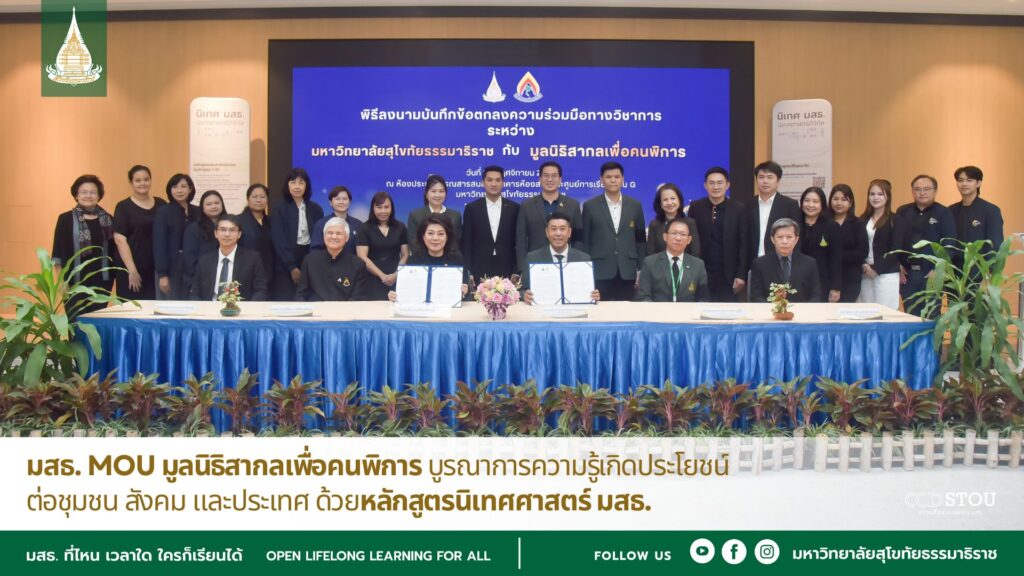 ข่าวทั่วไป มสธ. MOU มูลนิธิสากลเพื่อคนพิการ บูรณาการความรู้เกิดประโยชน์ต่อชุมชน สังคม และประเทศด้วยหลักสูตรนิเทศศาสตร์ มสธ.