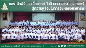 ข่าวกิจกรรมของนักศึกษา มสธ. จัดพิธีมอบเสื้อกาวน์ นักศึกษาสาธารณสุขศาสตร์ สู่ความพร้อมในการรับผิดชอบวิชาชีพ