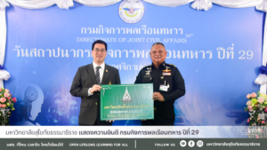 ข่าวกิจกรรมของมหาวิทยาลัย มหาวิทยาลัยสุโขทัยธรรมาธิราช (มสธ.) ส่งมอบน้ำดื่ม ให้กับองค์การบริหารส่วนตำบลเกาะเกร็ด